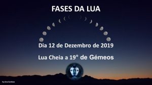 AS LUAS EM DEZEMBRO Dia 12 de Dezembro de 2019, a Lua está na sua Fase de Cheia a 19° no signo de Gémeos. Muito
