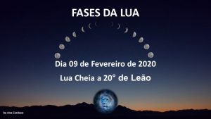 AS LUAS EM FEVEREIRO Dia 09 de Fevereiro de 2020, a Lua está na sua fase Cheia a 20° no signo de Leão. O Eu,