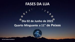 AS LUAS EM JUNHO DE 2021 Dia 02 de Junho de 2021, vamos ter a Lua na sua Fase de Quarto Minguante a 11° no