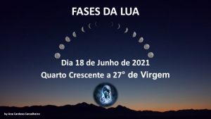 AS LUAS EM JUNHO DE 2021 Dia 18 de Junho de 2021, vamos ter a Lua na sua Fase de Quarto Crescente a 27° no